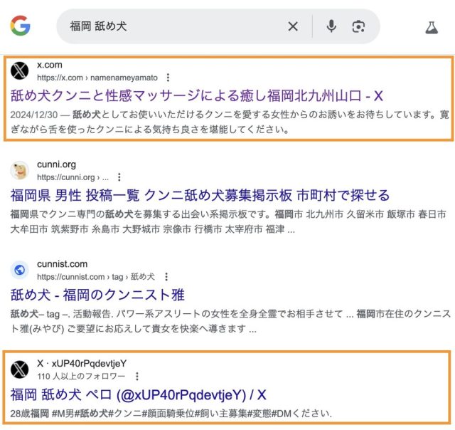 - Twitterの検索窓で「舐め犬」「クンニ」「舐められたい」で検索。